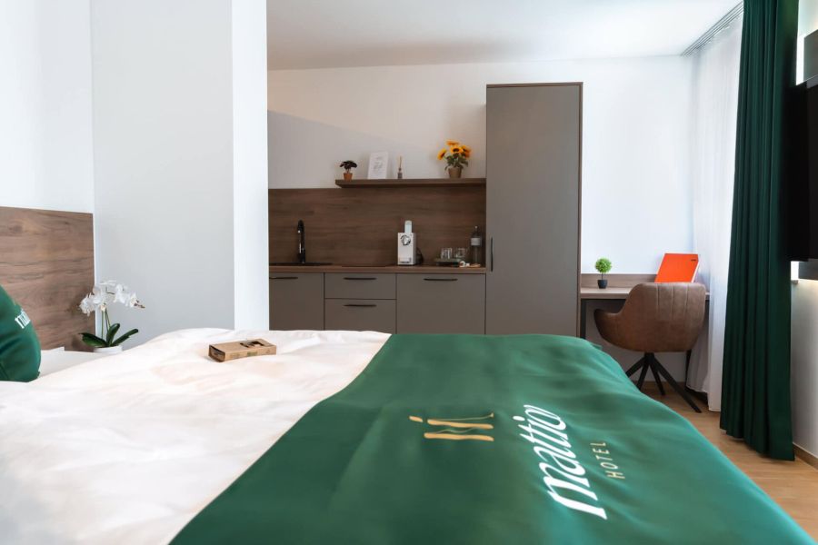 Das Mattiqo Comfort Zimmer bietet dir alles Wesentliche für einen unkomplizierten Aufenthalt. Die praktische Teeküche, der Smart-TV und das moderne Bad sind perfekt auf deine Bedürfnisse abgestimmt. Die ideale Wahl für preisbewusste Geschäftsreisende und Kurzaufenthalte in Mattighofen.