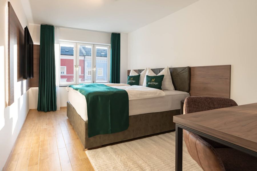 Das Mattiqo Comfort Plus Apartment verbindet modernen Komfort mit durchdachter Funktionalität. Hier erwartet dich ein gut ausgestattetes Apartment mit großem Smart-TV, praktischer Teeküche und stilvollem Bad. Der perfekte Ausgangspunkt für deinen Aufenthalt in Mattighofen.